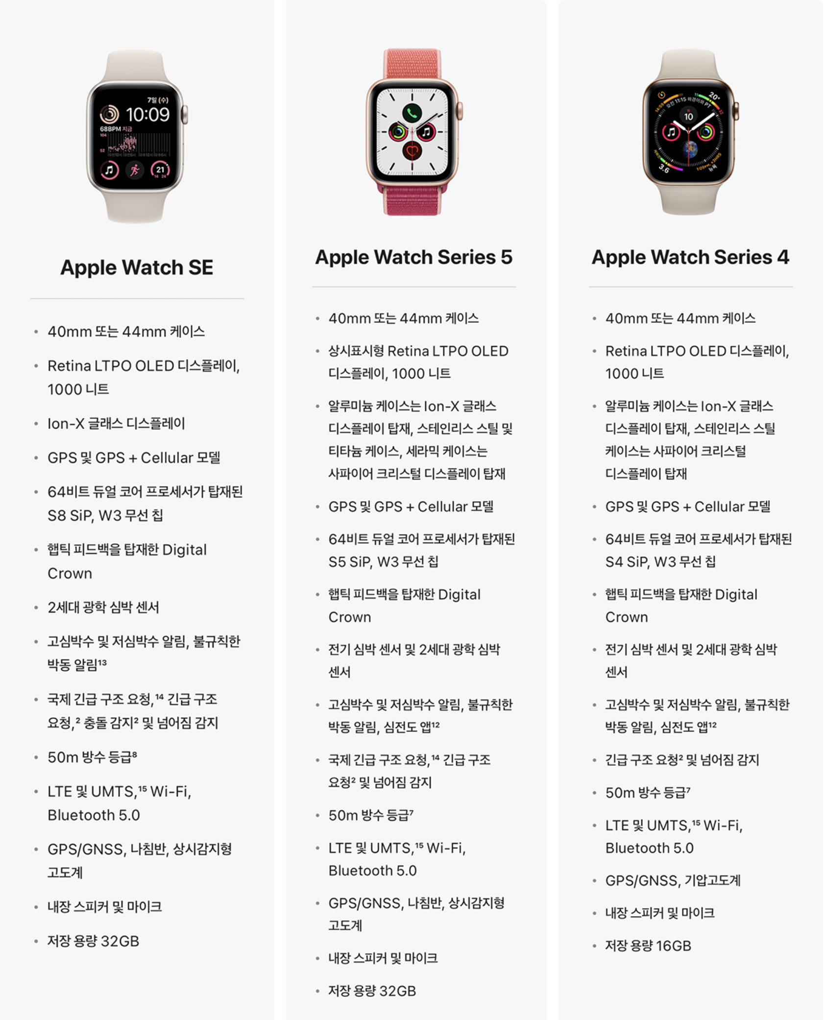 그렇다면 지금 나온 SE 2세대 워치와, 시리즈 5와는 무슨 차이가 있냐,