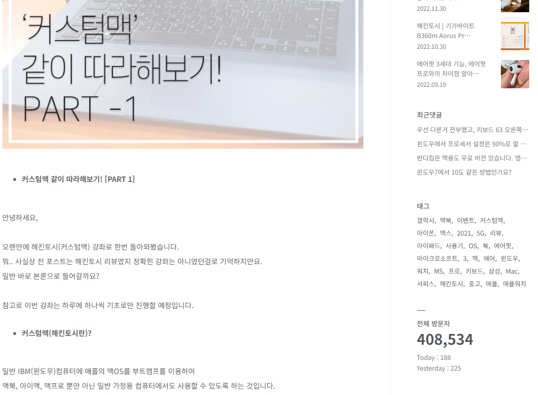 예전 대략 3년전 2020년도 쯤에 해킨토시 강좌랍시고 올린 글이 있습니다.