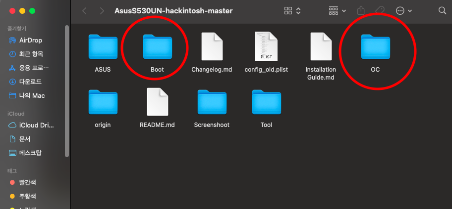 기존에 EFI안에 BOOT폴더와, CLOVER 폴더는 삭제해주고, 저 두개의 폴더들을 넣어 줬습니다.