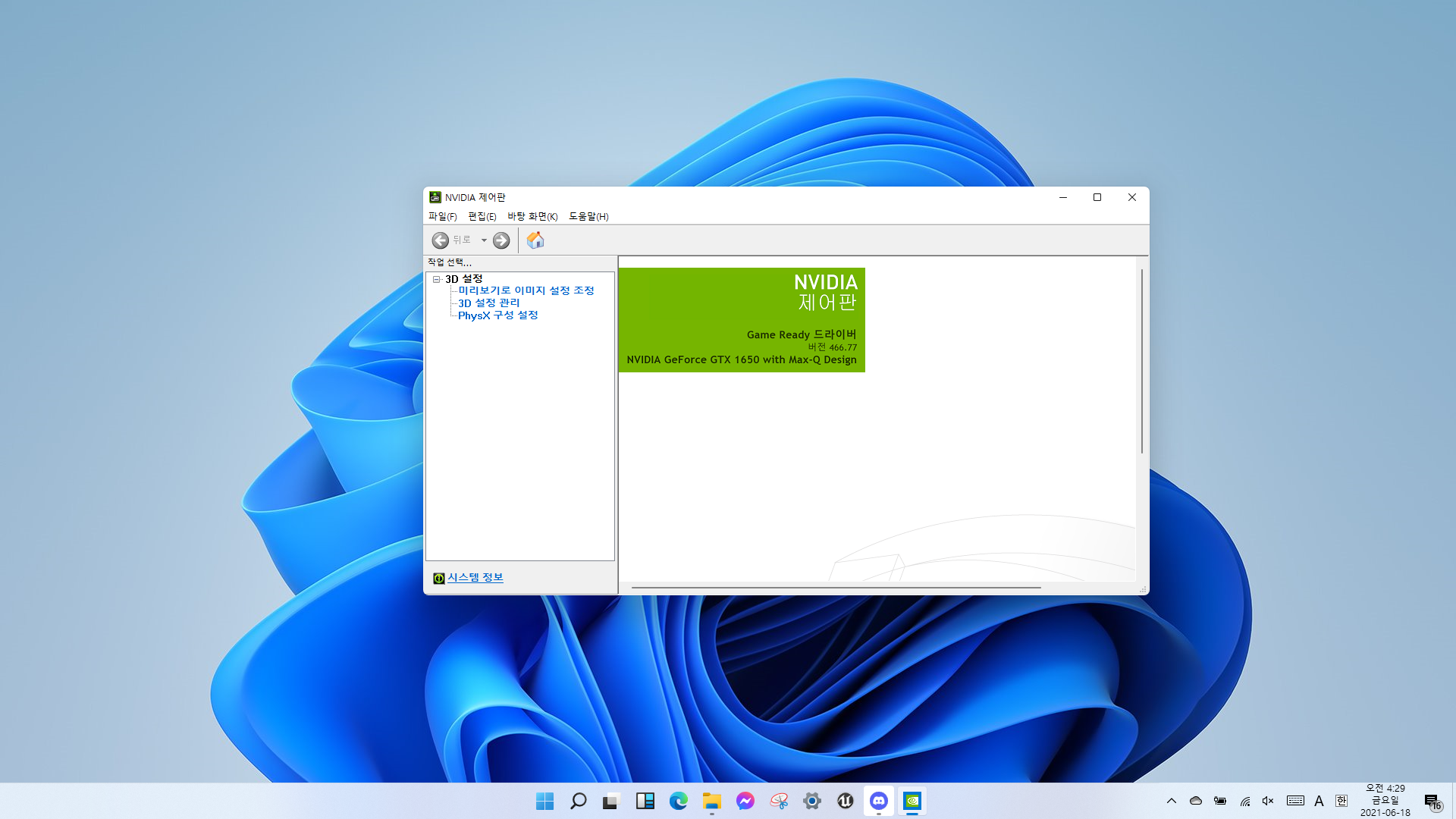 근데 저는 윈도우 11에서는 아직 개발자 베타버전이기 때문에 엔비디아