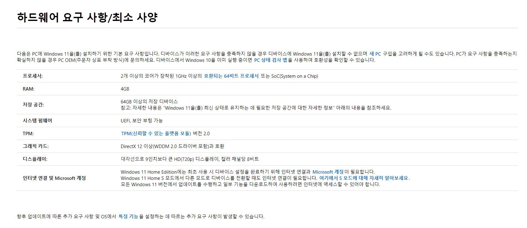 솔직히 말해서 지금 이게 현재 마소 홈페이지에 윈도우 11 지원 사양이거든요?